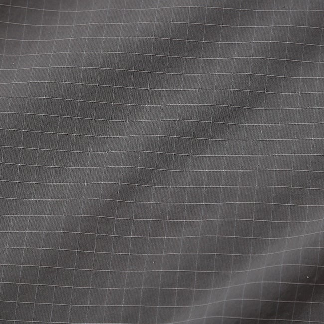 光の当たり方や見る角度によって表情が変わる、個性的なリップストップ素材を使用したフルジップフーディー