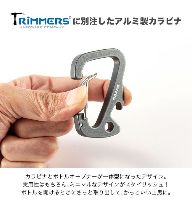 TRIMMERSに別注したアルミ製のカラビナ。
