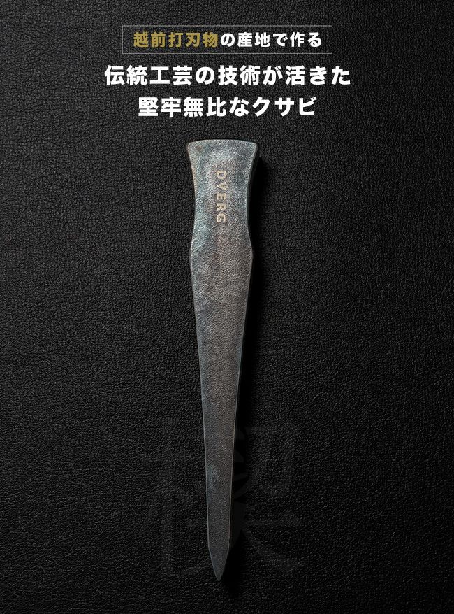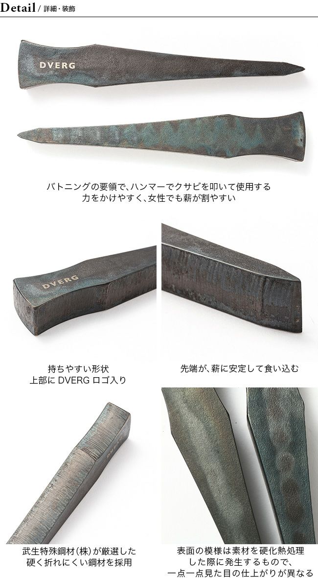 DVERGのクサビは使いやすさにこだわった独自の形状と熱処理したままの無骨な色合いが特徴で、 使い込むほど味わいが増します。