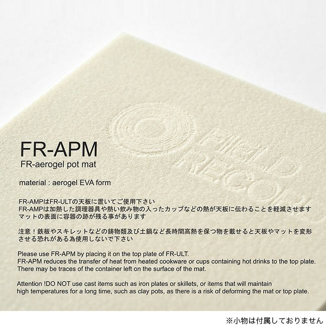 ■使用上の注意:アルコールストーブ、鉄板やスキレットなどの鋳物類及び土鍋など長時間高熱を保つ物には使用不可。アルコールストーブ等長時間熱を発する物を置く際は別売りのカーボンプレートFR-CFPをご使用ください。