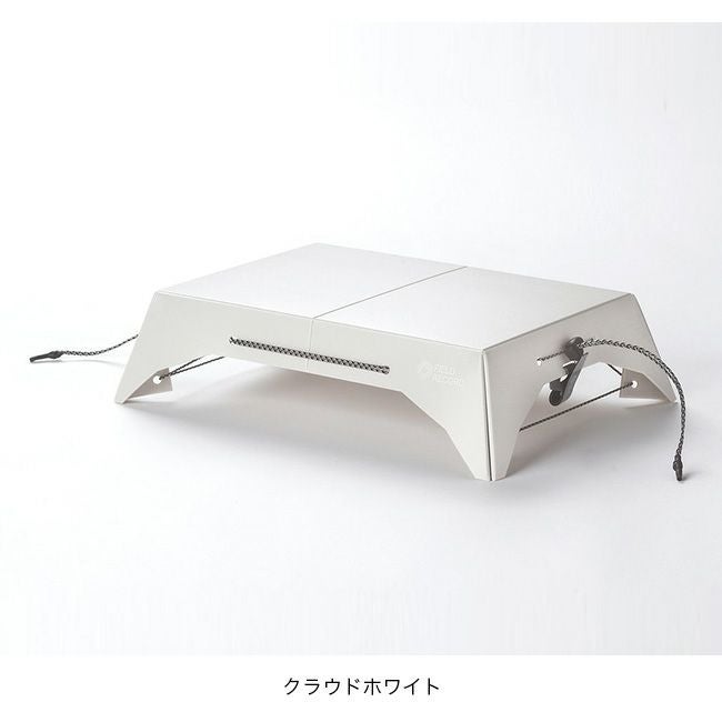 一枚のポリプロピレン板を太さ1.5mmのオリジナルダイニーマ芯ガイラインで締めることにより重さ45gの超軽量のテーブルになります。