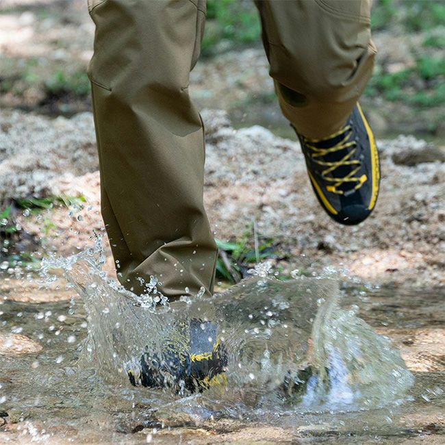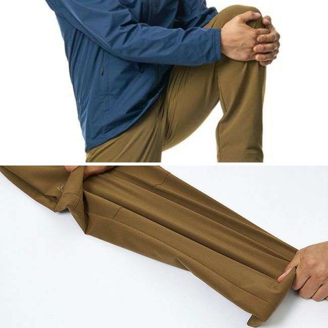 タテヨコに伸びて岩場などでの大きなアクションでもストレスフリーの動きやすさを備えます。