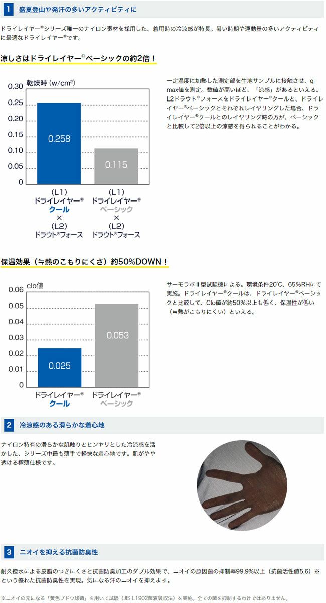 ドライレイヤー®の中で、もっとも薄く、涼感を備えたシリーズ。