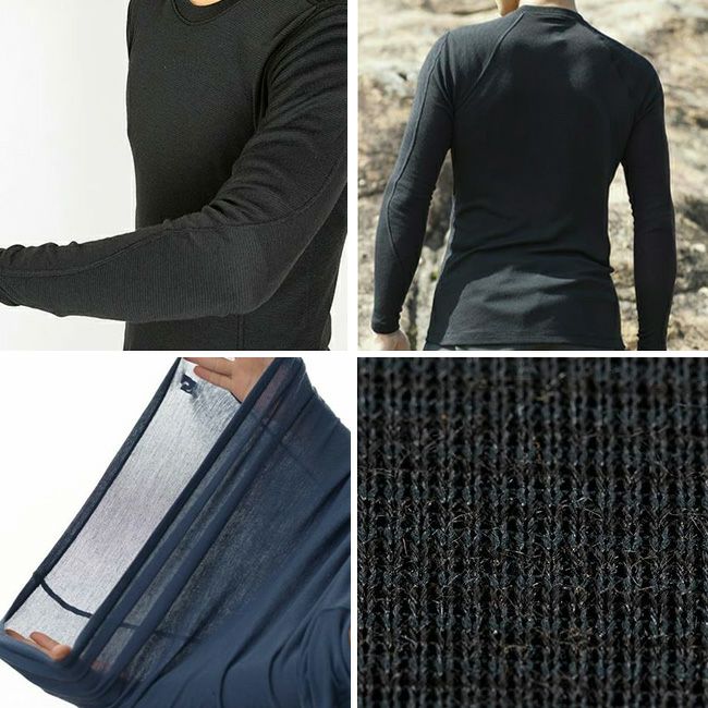 未防縮メリノウールとポリエステルのハイブリッドベースレイヤーです。