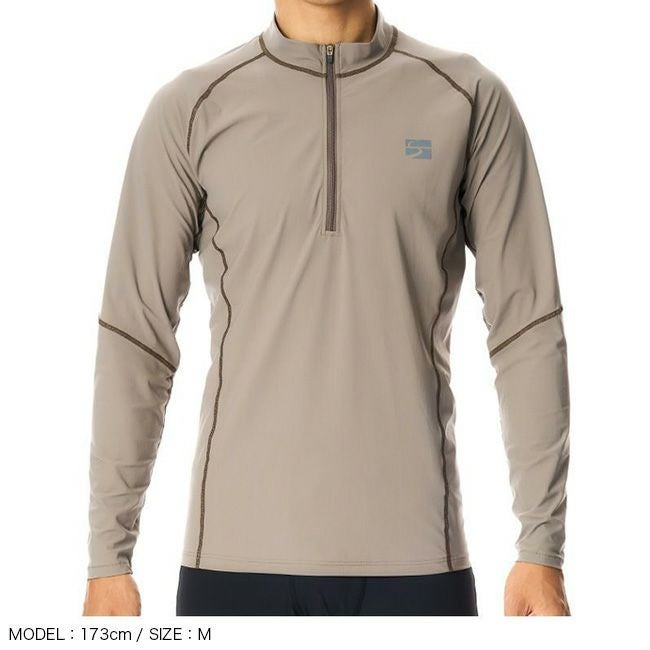 フロントジップで着脱や温度調節ががしやすく、日差しや擦れから首回りを保護するジップネックタイプです。