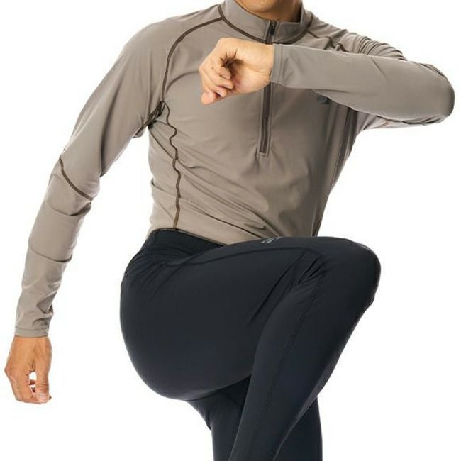 また生地のストレッチ性を活かしたパターンに加え、伸びをよくして嵩張りを抑える袖口の仕様、縫い目には肌当たりの優しいフラットシーマーを採用するなど、快適な動きを可能にします。