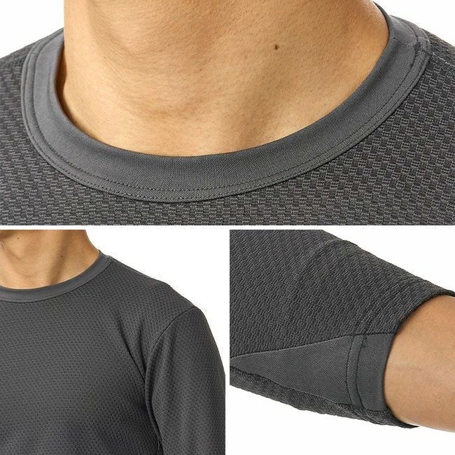 表面側は立体構造、肌面側は微起毛をかけることで、吸汗性と軽量性を損なわずに最大限の保温力を発揮できるように設計。