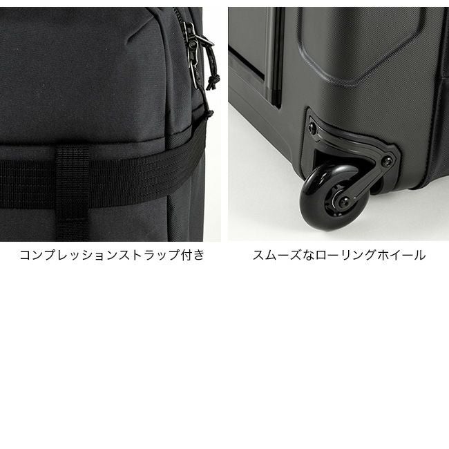 耐久性に優れたリサイクルナイロンにTPEラミネートを施し、ポリカーボネート製シャーシとスムーズなローリングホイールを採用。