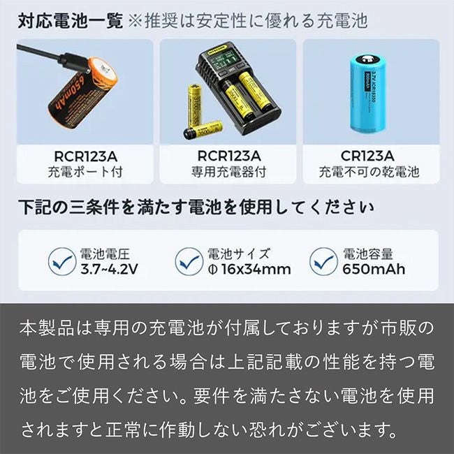 ・専用の充電池(type-CのUSBコードで直接充電式)。