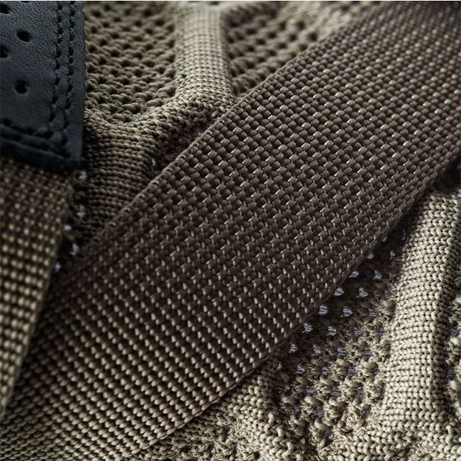 蜂の巣やカメの甲羅など自然界が形づくる安定した構造「ハニカム形状」をモチーフに製作されたメッシュ素材のホールド性能と通気性、フットペットの計算されたクッション性と弾力、地形を選ばない汎用性を誇るグリップソール。
