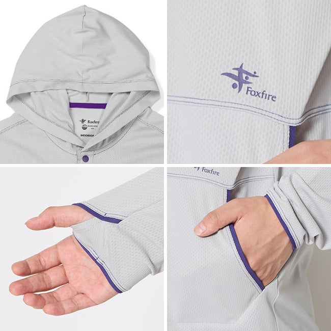 防虫、吸汗速乾、UVカット機能を持つトランスウェット・スコーロン素材のプルオーバーフーディ