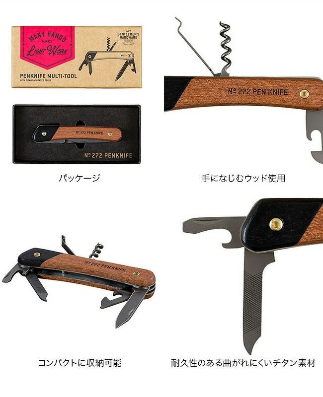 Gentlemen's Hardware ジェントルマンハードウェア ペンナイフマルチツールウッドハンドル&チタン仕上げ