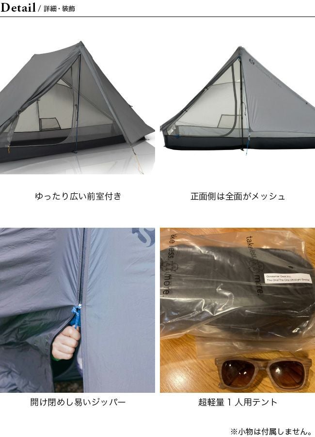ウルトラライトをコンセプトにした洗練されたシンプルな超軽量1人用テント。