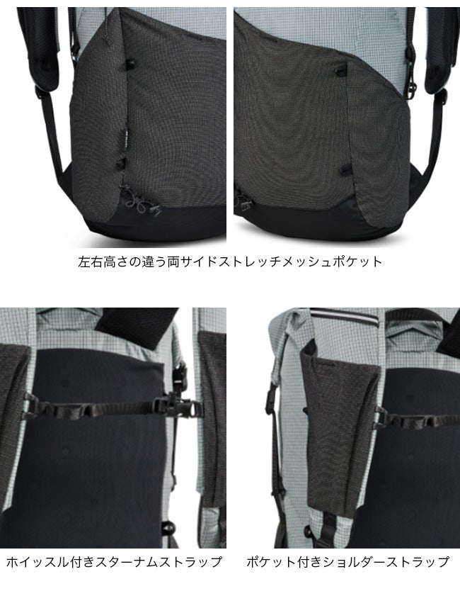 メッシュポケットおよびショルダーストラップポケットにはUHMWPE(超高分子量ポリエチレン)Stretch Meshを採用し、高い強度と伸縮性を備えています。