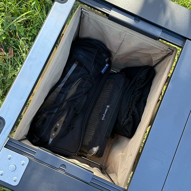収納時はワンタッチバケット本体のサイドのポケットにピッタリ収納する事が可能です。