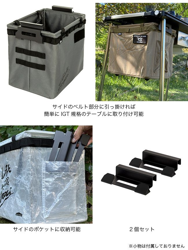 ワンタッチバケット本体のサイドのベルト部分に引っ掛けるだけで、簡単にIGT規格のテーブルに取り付けることが出来ます。