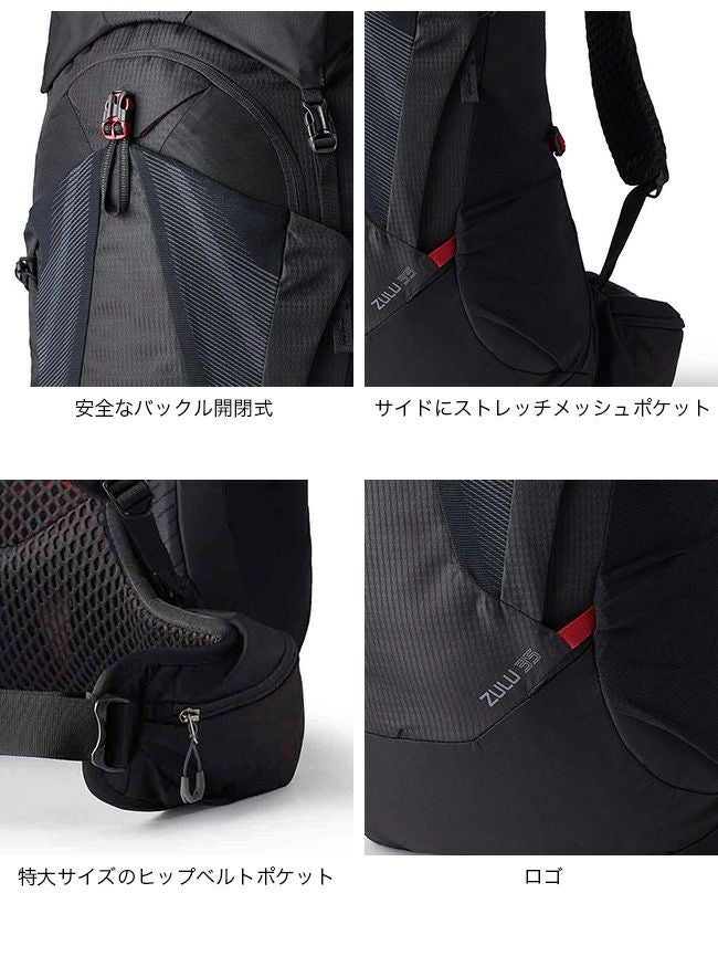 特大サイズのヒップベルトポケットや、開閉しやすいU字型ファスナーのメイン収納、ハイドレーション対応スリーブなど機能も充実。