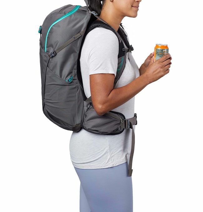 両サイドには、コンプレッションストラップをポケットの上下どちらにも通すことができるストレッチメッシュポケット。