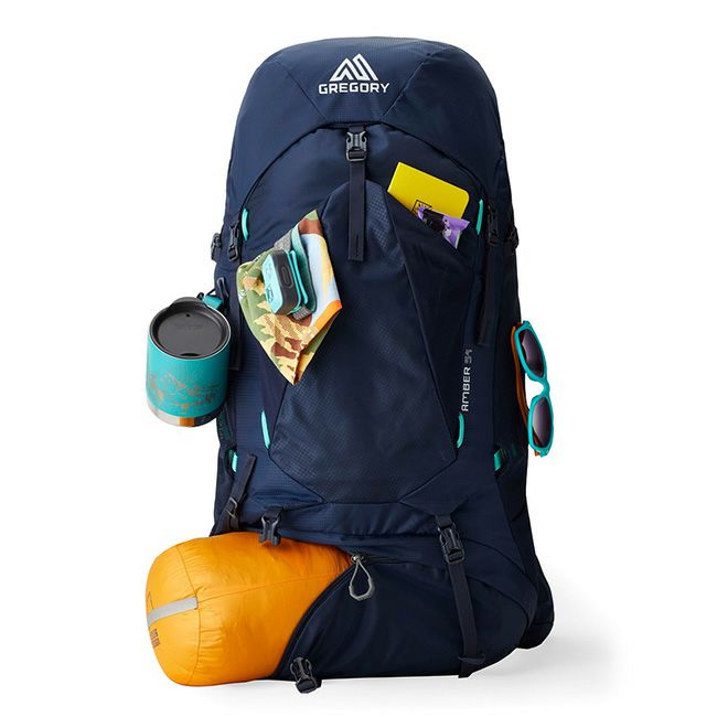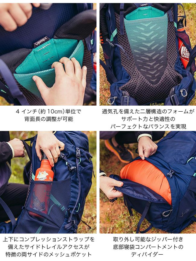 上下にコンプレッションストラップを備えたサイドトレイルアクセスが特徴の両サイドのメッシュポケット