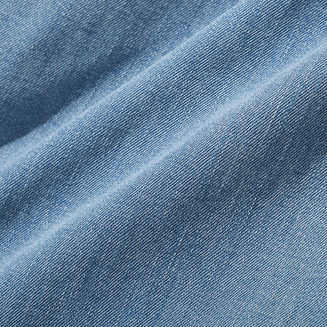 デニムライクな見た目でありながら、伸縮性とやわらかな風合いを兼ね備えており、動きやすくリラックス感のある着用感が魅力。