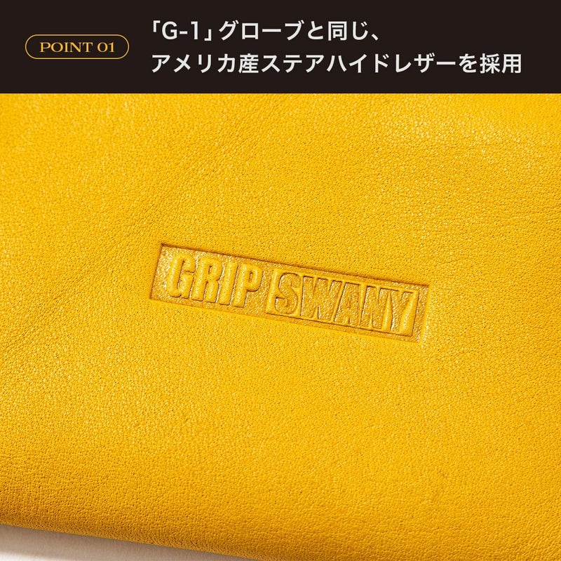 GRIP SWANYの代名詞「G-1」グローブと同じ、アメリカ産ステアハイドレザーを採用した特別仕様のミニウォレット。