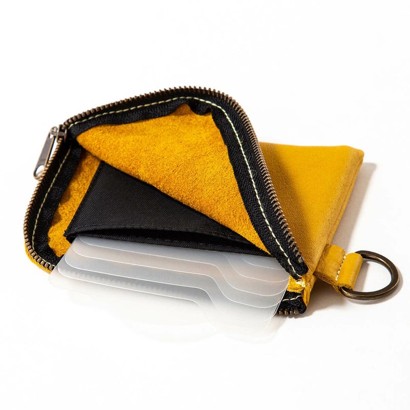 GRIP SWANYのG-1 HERITAGE GLOVEと同じイエローの革で手触り、良く最高です。 中にカードを入れらるケースが有りそれも良いです。