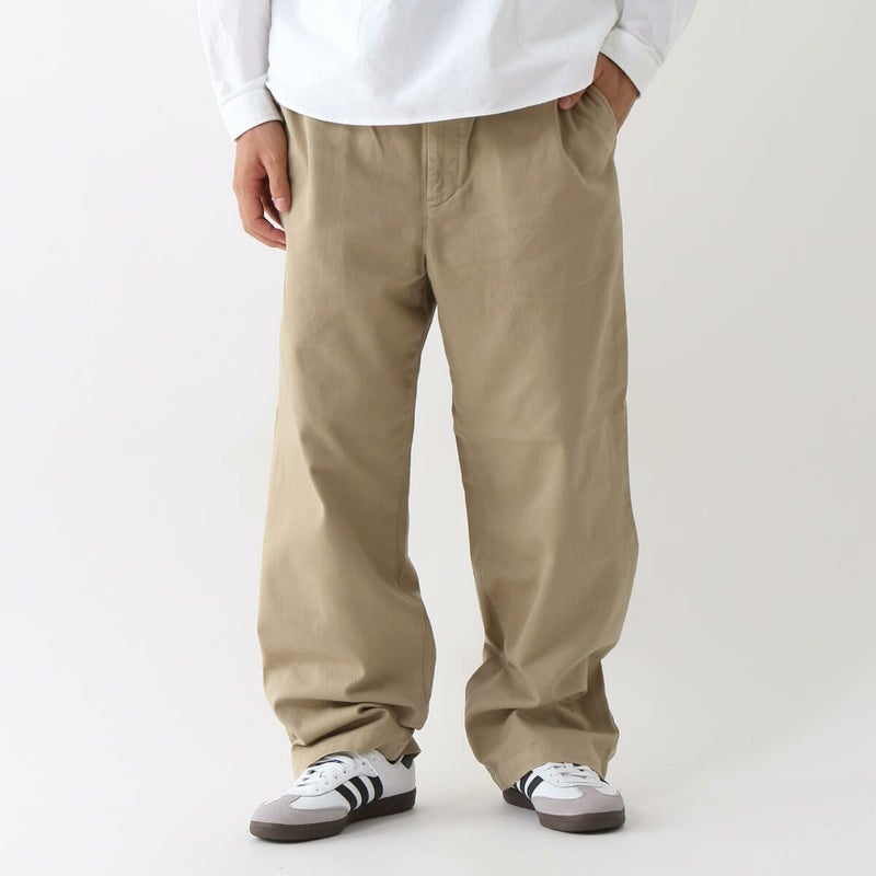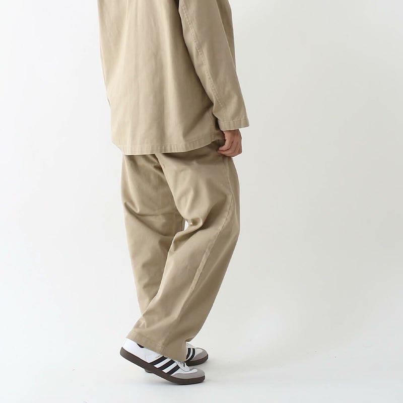 緩めに折り上げたツイル素材の裏面に起毛を施し、柔らかく落ち間のある新感覚のチノ素材に仕上げています。