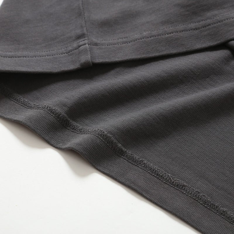 20番手の双糸を引き揃え、さらに度詰めで編むことで綺麗な目面でありながら安心感のある厚みに仕上がっています。