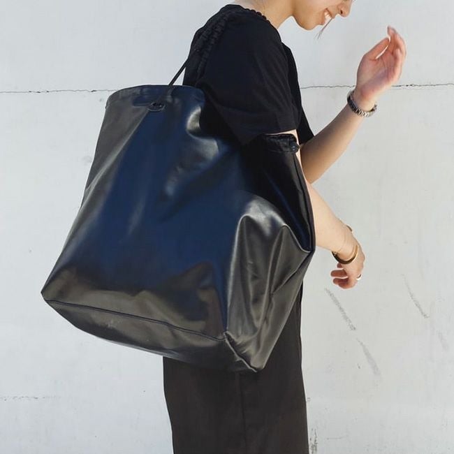 オールハンドメイドのハンドル部分がアクセントとして効いています。使う度に柔らかくなるレザーです。