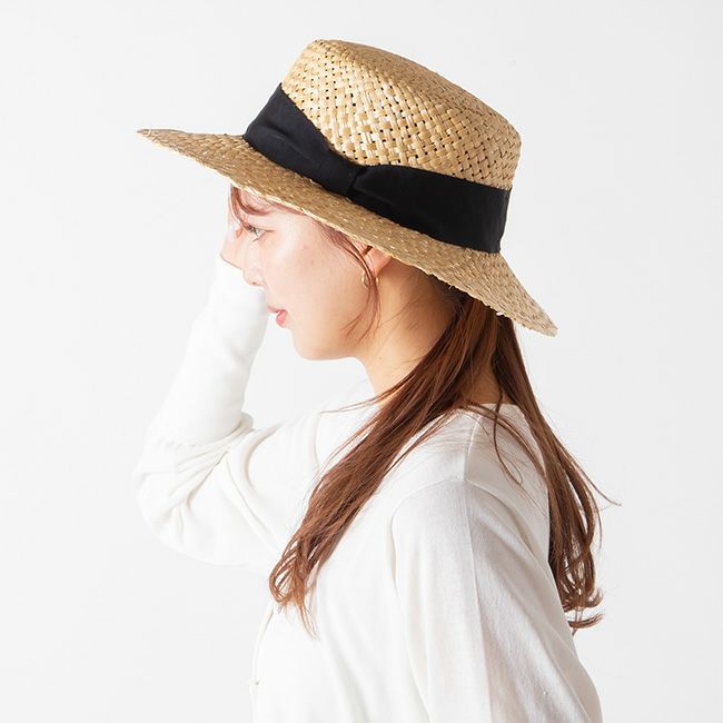 黒リボンを使用したシンプルな2品番に加え、山柄のリボンを使用した1品番と、つば外側にパイピングを施した1品番の4品番展開。