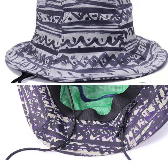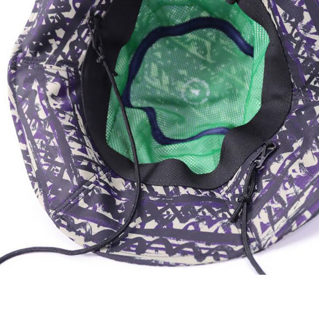 裏地にはメッシュ生地を使用し、着脱可能なアゴ紐を取り付けました。