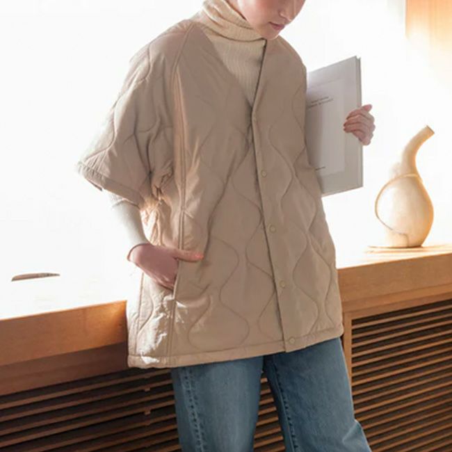 ひじの辺りまで袖があり肩がしっかり包まれるので、あたたかさをキープしてくれます。