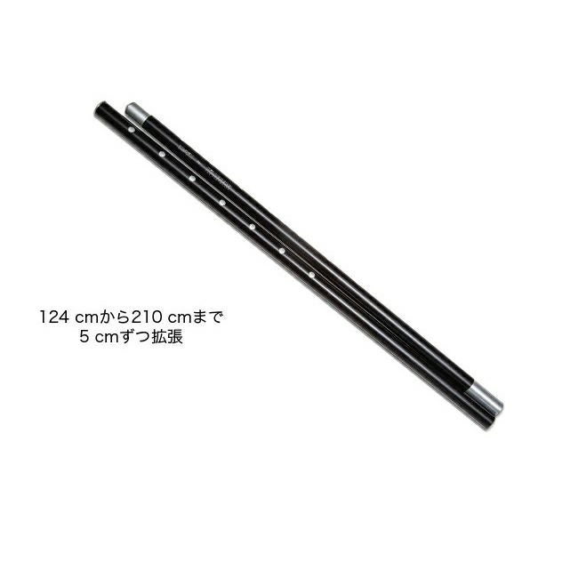 2セクションのタープポールは、両端からスライドし、124 cmから210 cmまで5 cmずつ拡張できます。