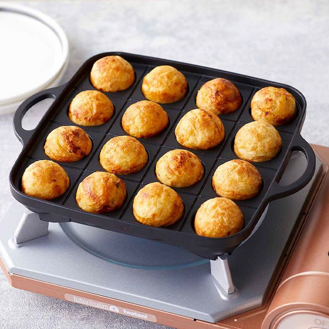 フッ素加工でこげつきにくい、ガスコンロ用たこ焼きプレート。