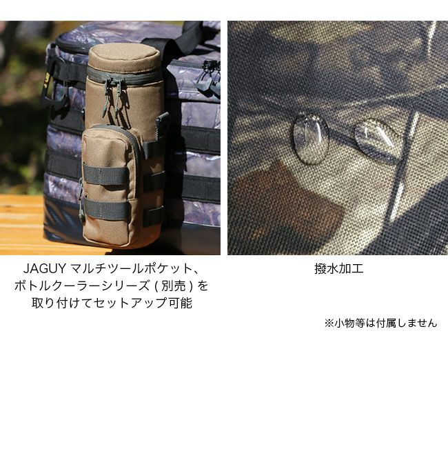 JAGUYマルチツールポケット、ボトルクーラーシリーズ(別売)を取り付けセットアップできます。