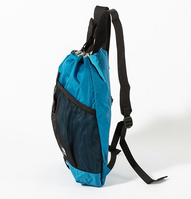 シンプルな巾着タイプのメインコンパートメントに大口のオープンメッシュポケットをフロントに設置し、手軽に荷物の出し入れができるナップサック。