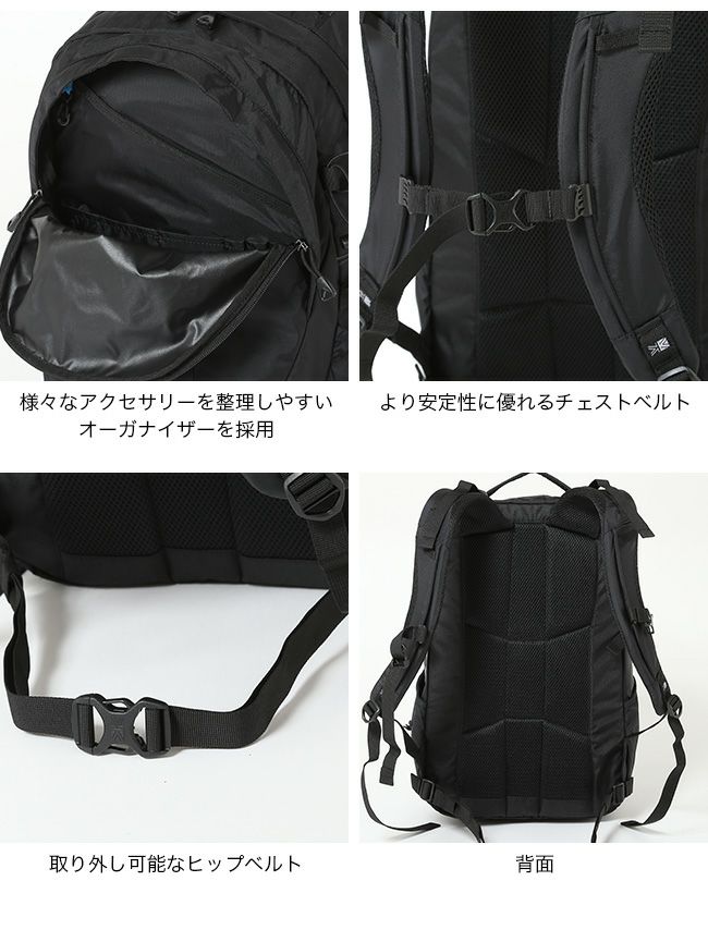 フロントポケット内部にはオーガナイザーも備え、充実した機能とシンプルな外観デザインでハイキングから日常使いにちょうどいいサイズのデイパック。