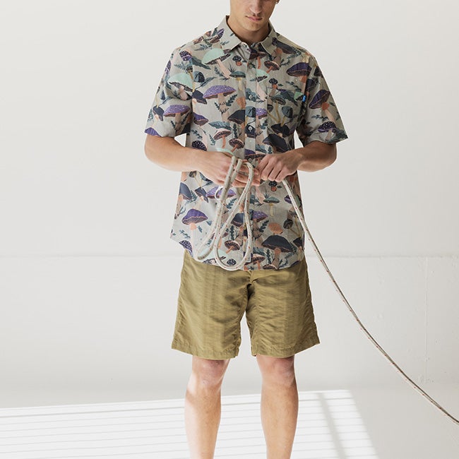 KAVUでは生地のグラフィックを1から手掛けているため、なかなかお見掛けしない個性的な柄のシャツ。