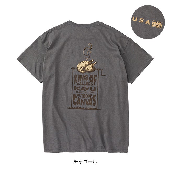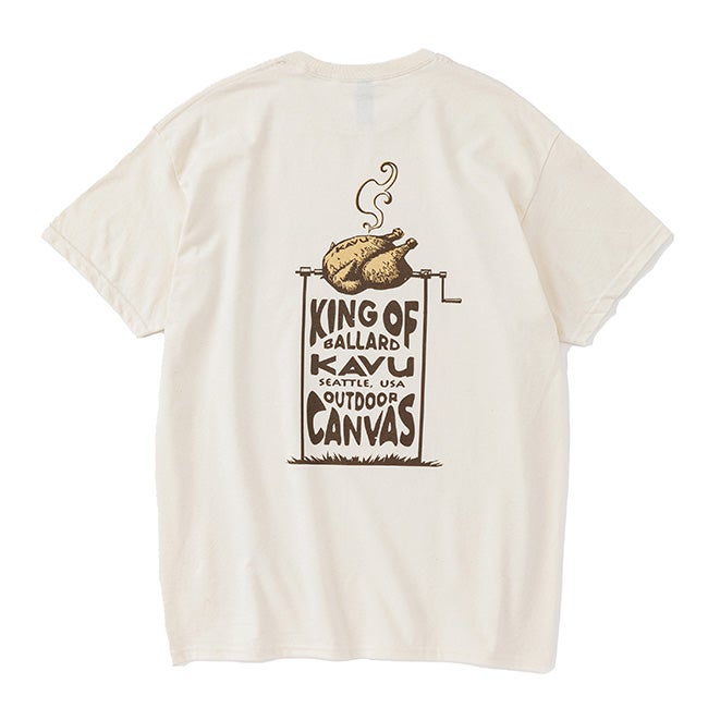 BBQで魅せる料理の代表格!チキンの丸焼きがデザインされた着心地の良いコットン製のTシャツ