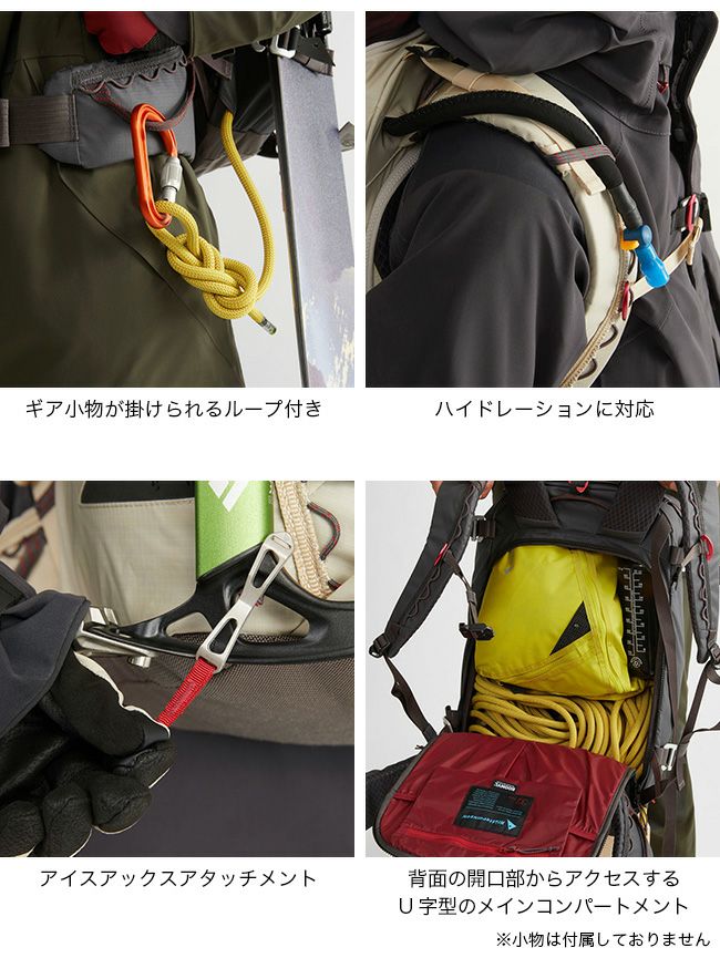 バックパック上部にヘルメットホルダーを装備