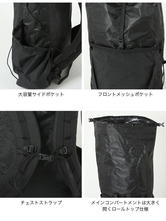 本製品は、Dyneema®コンポジットファブリックを採用したフレームレス構造のバックパックです