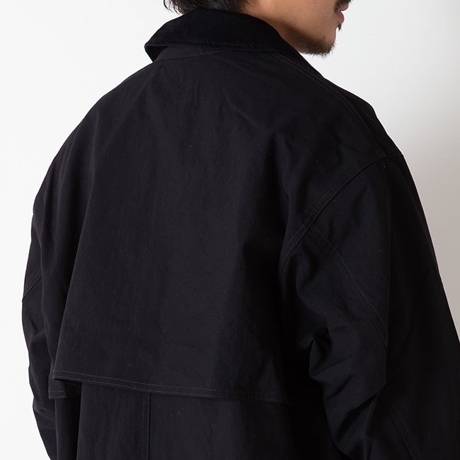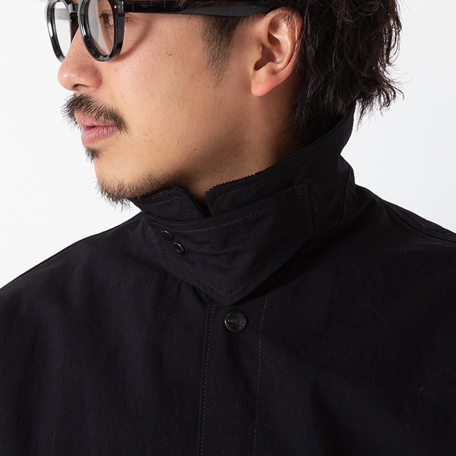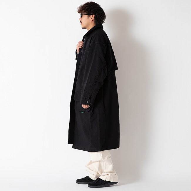 両サイドにはオリジナル同様のデザインを踏襲した多機能ポケットを配置し、背面は2枚仕立てのケープスタイルとセンタースリット入りで動きやすさにも配慮しています。