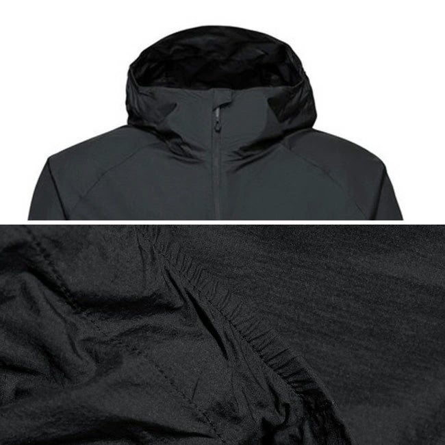 最適なフィット感を生み出すフードの伸縮性パイピング