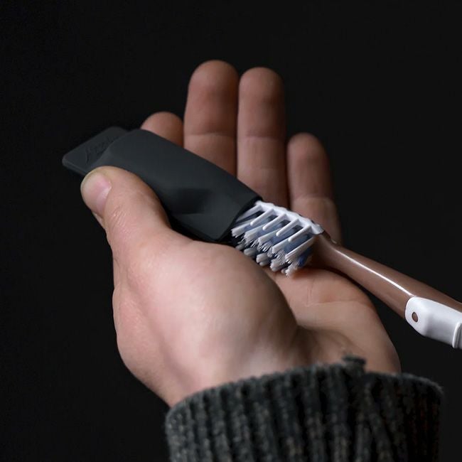 安全性の高いシリコン製で歯ブラシの毛を損傷や汚染からガードします。