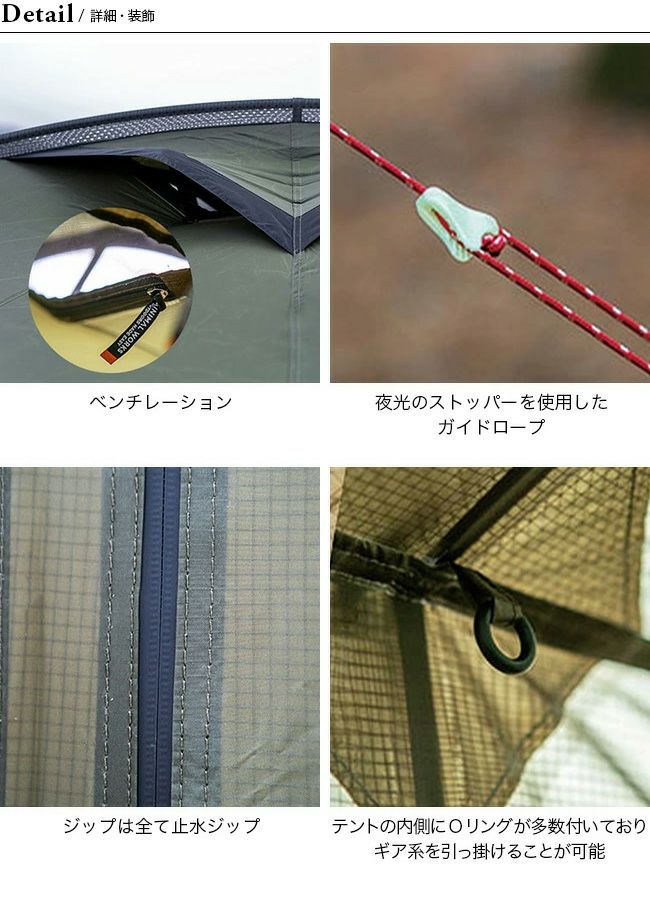 ■素材:Nylon 40D, Nylon 50D Mesh, Water Proof 3,000mm, Duralumin