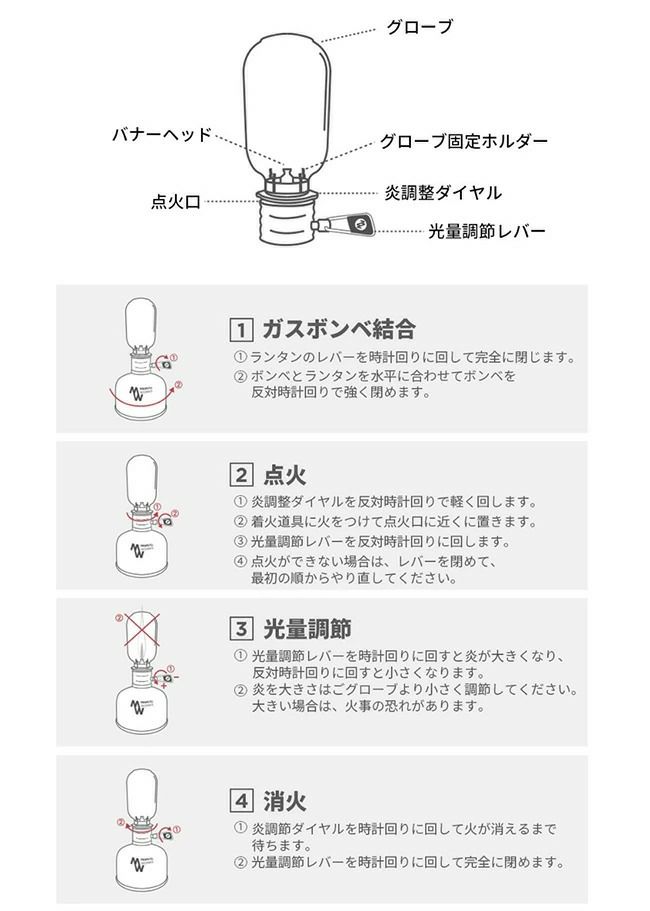 ■ガス消費量:110g/15時間、230g/31時間、450g/61時間