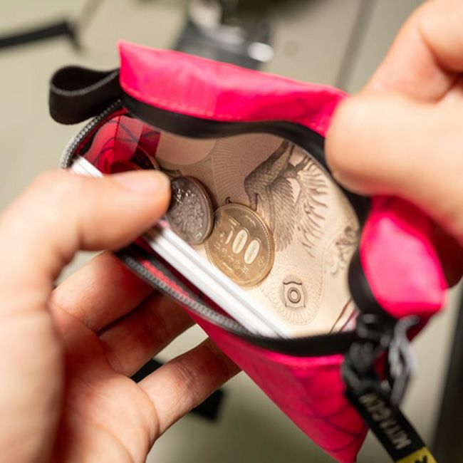 緊急用の1万円札とカードを入れて、現金を使った際に発生した小銭は真ん中にしまう、そんなミニマムに使うことができる小銭入れです。