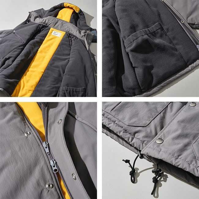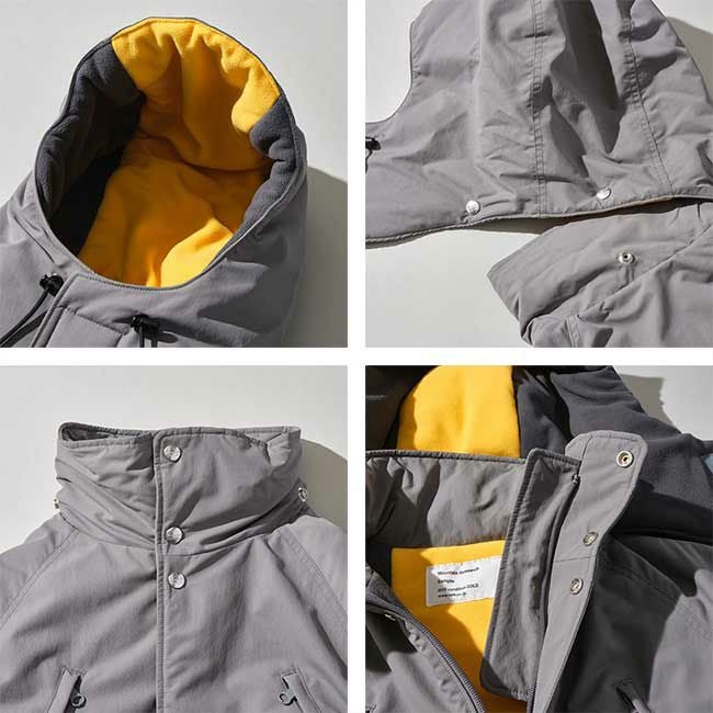 脱着式フードの内側にはフリース使いによるライン配色が施されておりグッドビジュアルに仕上がっています。