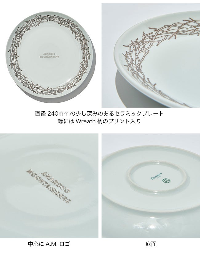 中心にA.M.ロゴ、縁にはWreath柄のプリント入り。
