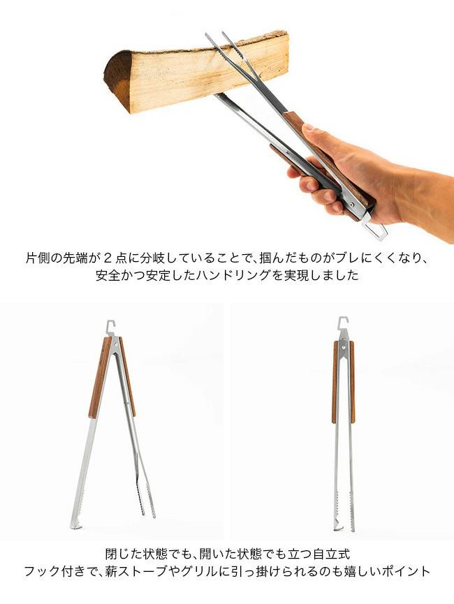 片側の先端が2点に分岐していることで、薪や炭などを3点で掴むことが可能に。
